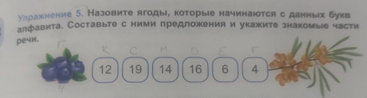 Упражнение 5. Назовите ягоды, которые начинаются с данных букв алфавита. Составьте с ними предложения и укажите знакомые части речи.