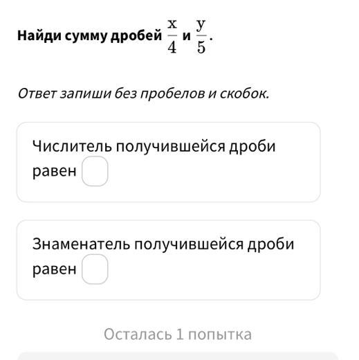 Числитель получившейся дроби равен 5x + 4y; знаменатель 20.