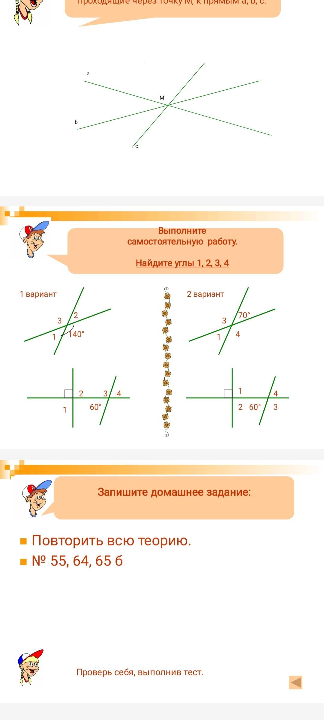 Нужно знать, что вертикальные углы равны, а сумма смежных углов всегда равна 180°