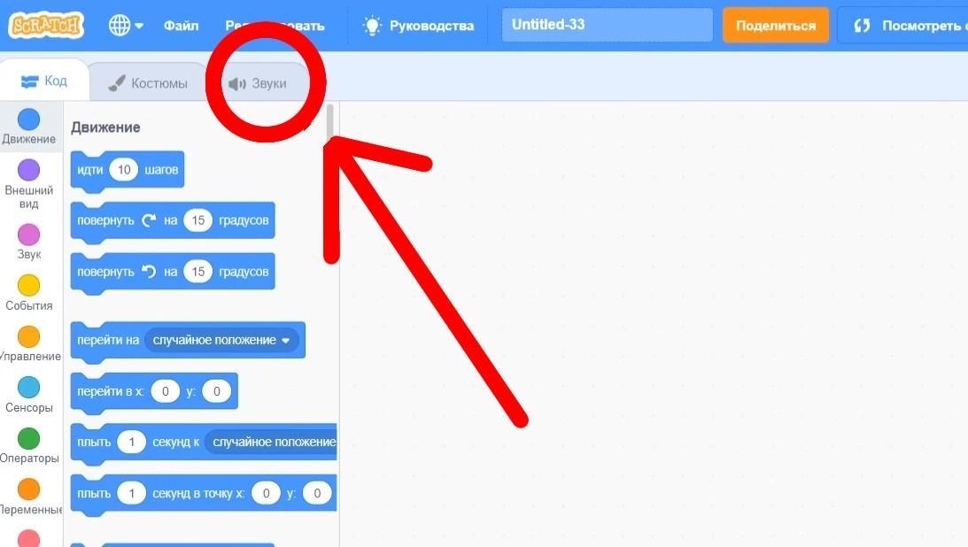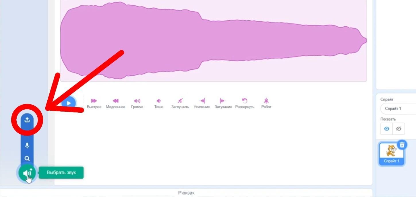 2. Якщо звук, вбудований у скретч, вибираєте перший внизу.