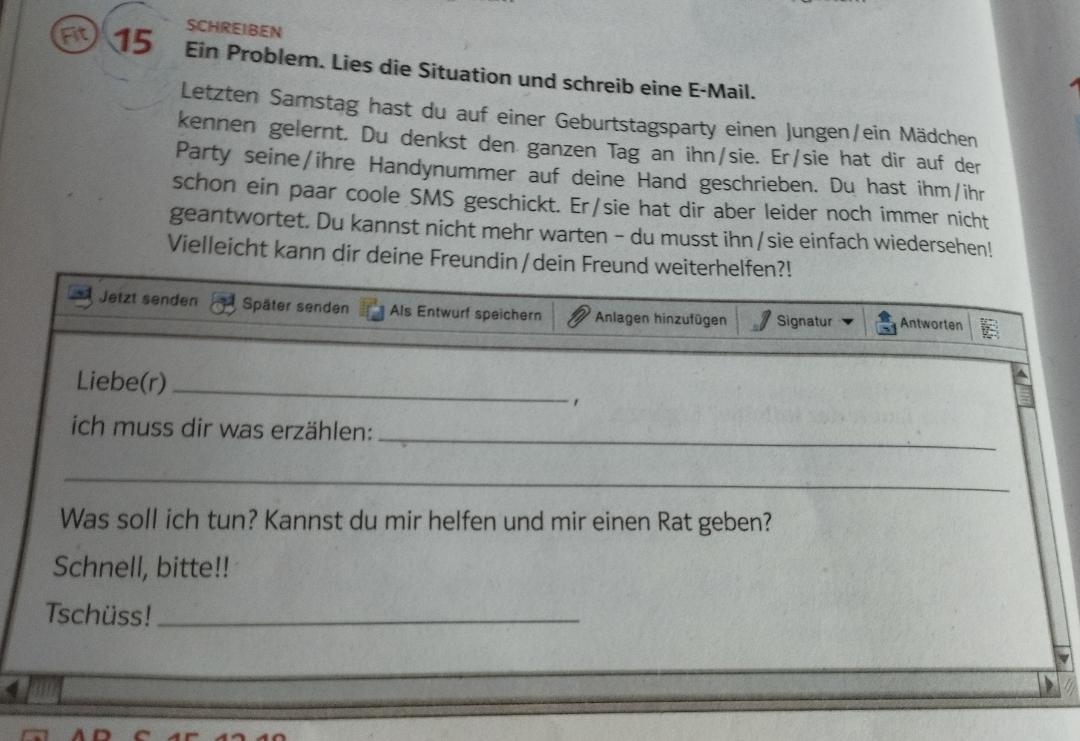 ich muss dir etwas erzählen: Letzten Samstag war ich auf einer Geburtstagsparty und habe dort ein unglaublich interessantes Mädchen kennengelernt. Den ganzen Tag über kann ich nur an sie denken. Auf der Party hat sie mir ihre Handynummer auf die Hand geschrieben, und ich habe ihr bereits ein paar coole SMS geschickt, aber bisher habe ich leider noch keine Antwort von ihr erhalten.