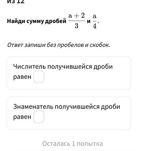 Числитель получившейся дроби равен 7a + 8; знаменатель 12.