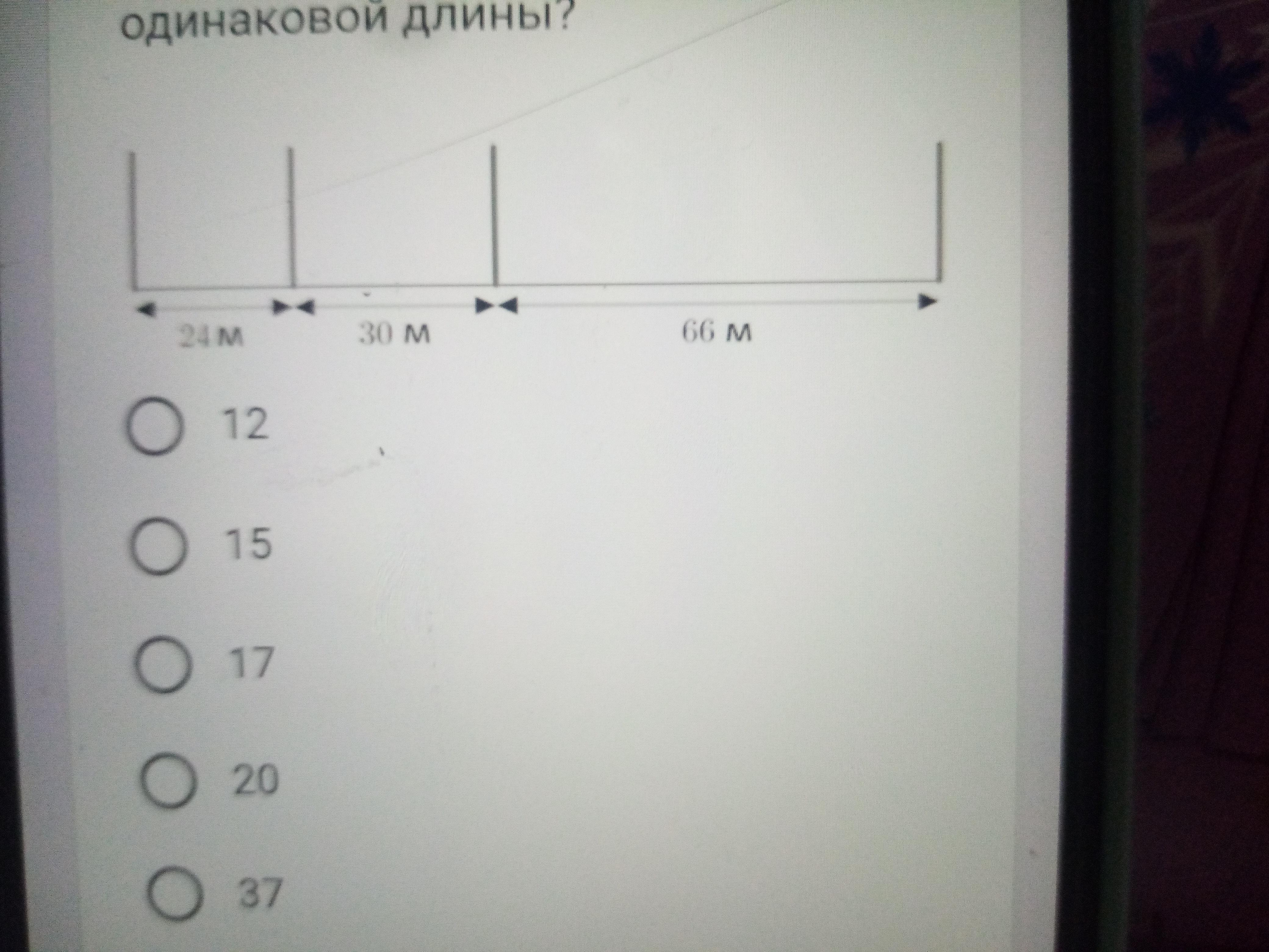 Четыре столбика размещены вдоль 120-метровой дорожки. Какое наименьшее количество столбиков нужно добавить, чтобы дорожка оказалась разделена на участки одинаковой ДЛИНЫ? 30 БАЛЛОВ ПОЖАЛУЙСТА ПОМОГИТЕ
