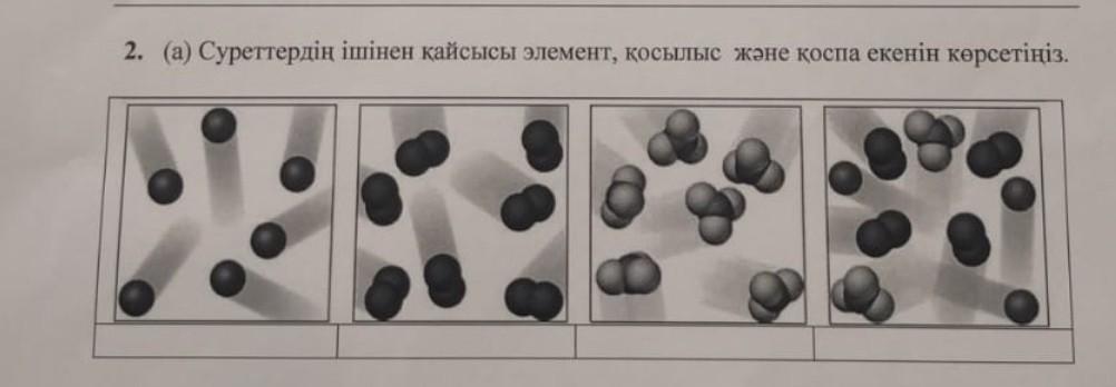 2. (а) Суреттердiң iшiнен кайсысы элемент, косылыс және коспа екенін көрсетіңіз.