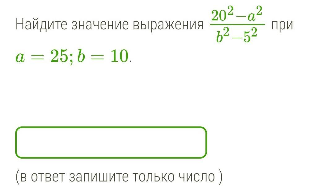 (20² - a²) / (b² - 5²) = (20² - 25²) / (10² - 5²) = (400 - 625) / (100 - 25) = -225 / 75 = -3