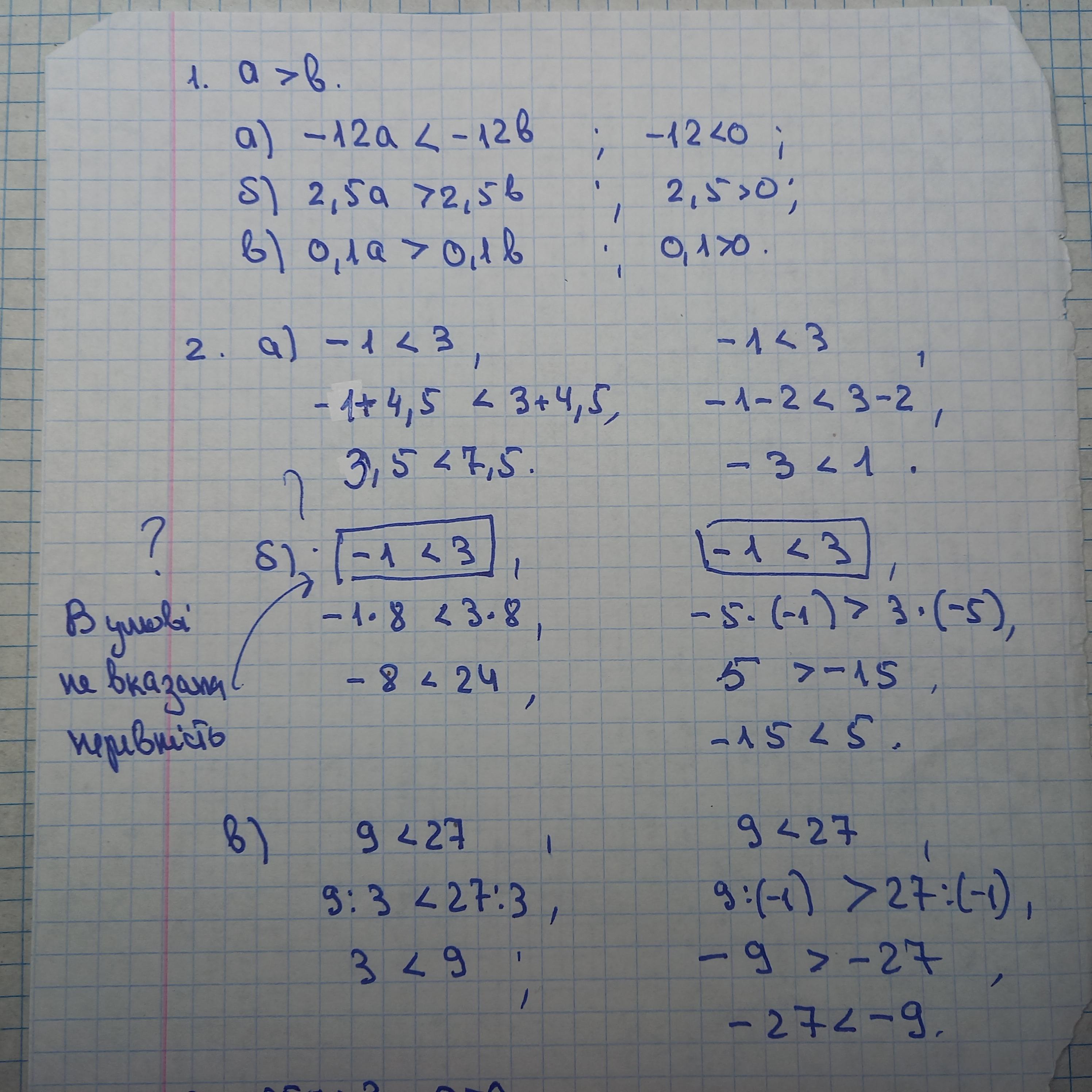 в) якщо обидві частини нерівності 9 < 27 розділимо на 3; на -1.