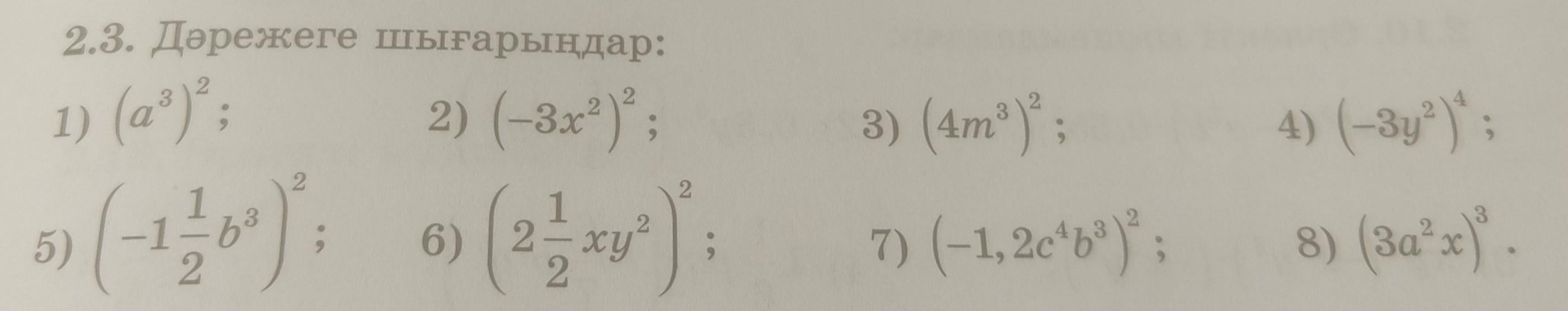 1.(a²)³=a²+³ 2.(-3x²)²=3x²+² 3.(4m³)²=4m³+²