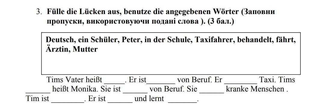 Peter, Taxifahrer, fährt, Mutter, Ärztin, behandelt, ein Schüler, in der Schule, Deutsch