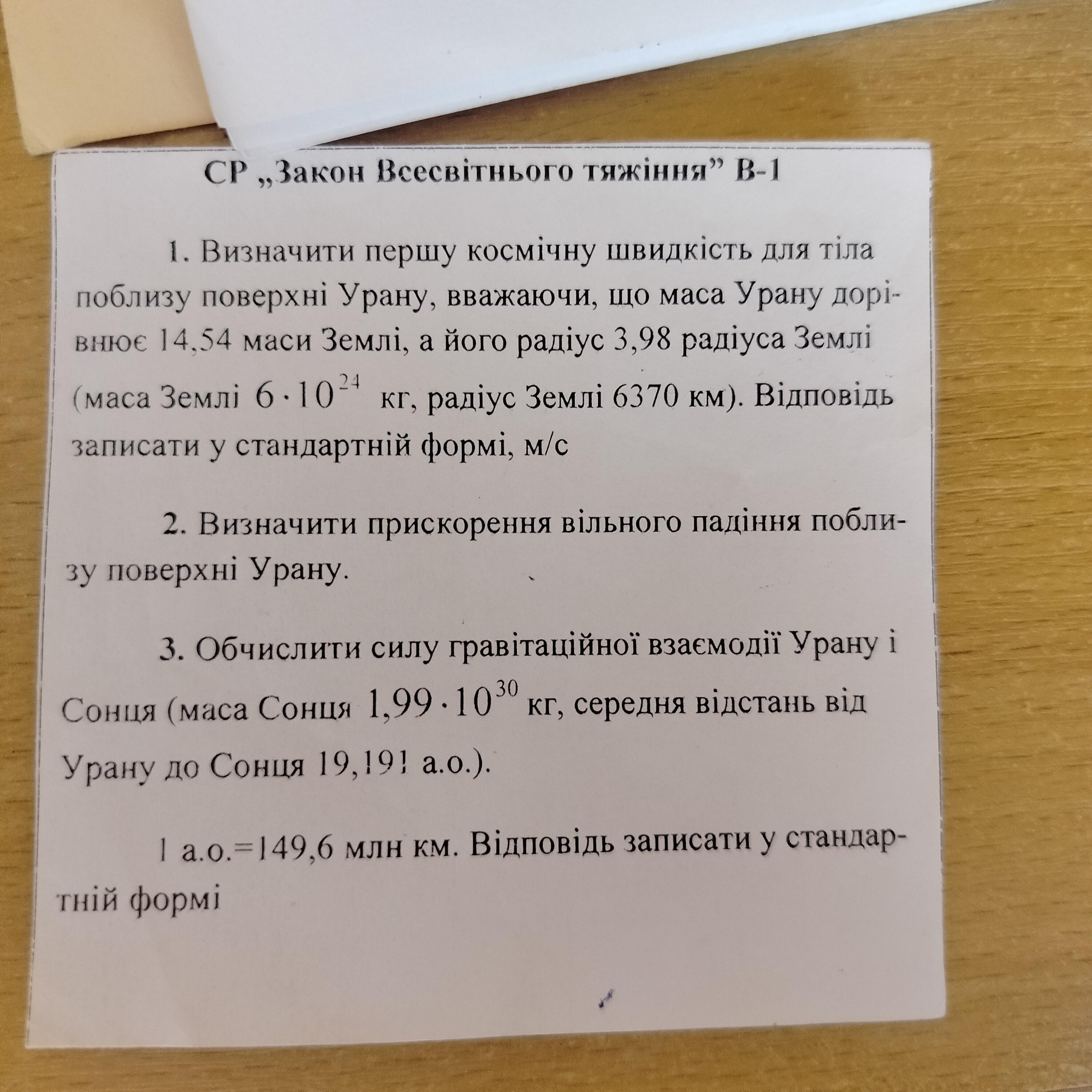 Визначити першу космічну швидкість для тіла поблизу поверхні Урану, вважаючи, що маса Урану дорівнює 14.54 маси Землі, а його радіус 3,98 радіуса Землі (маса Землі 6×10²⁴кг, радіус Землі 6370 км). Відповідь записати у стандартній формі, м/с