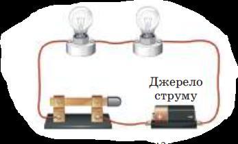 Накресліть електричну схему послідовного з’єднання двох ламп за малюнком 10