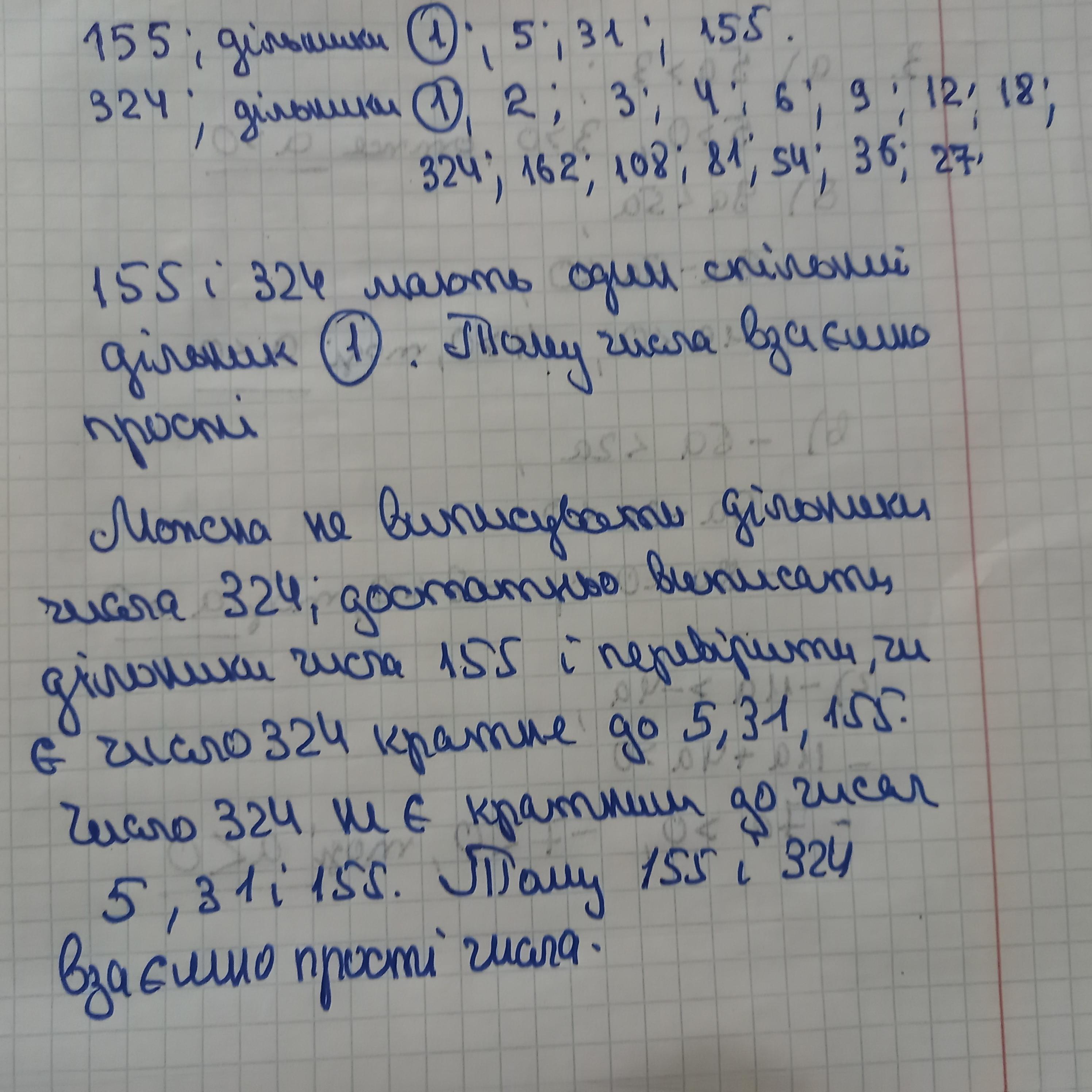 Чи є числа 155 і 324 взаємно простими? ДОПОМОЖІТЬ ПЖ