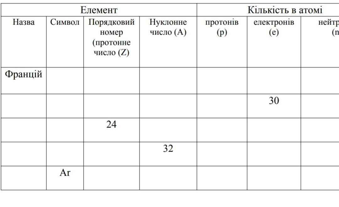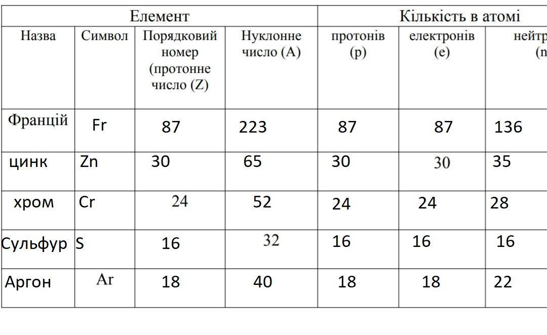 Її можна заповнити завдяки табличці хімічних елементів.