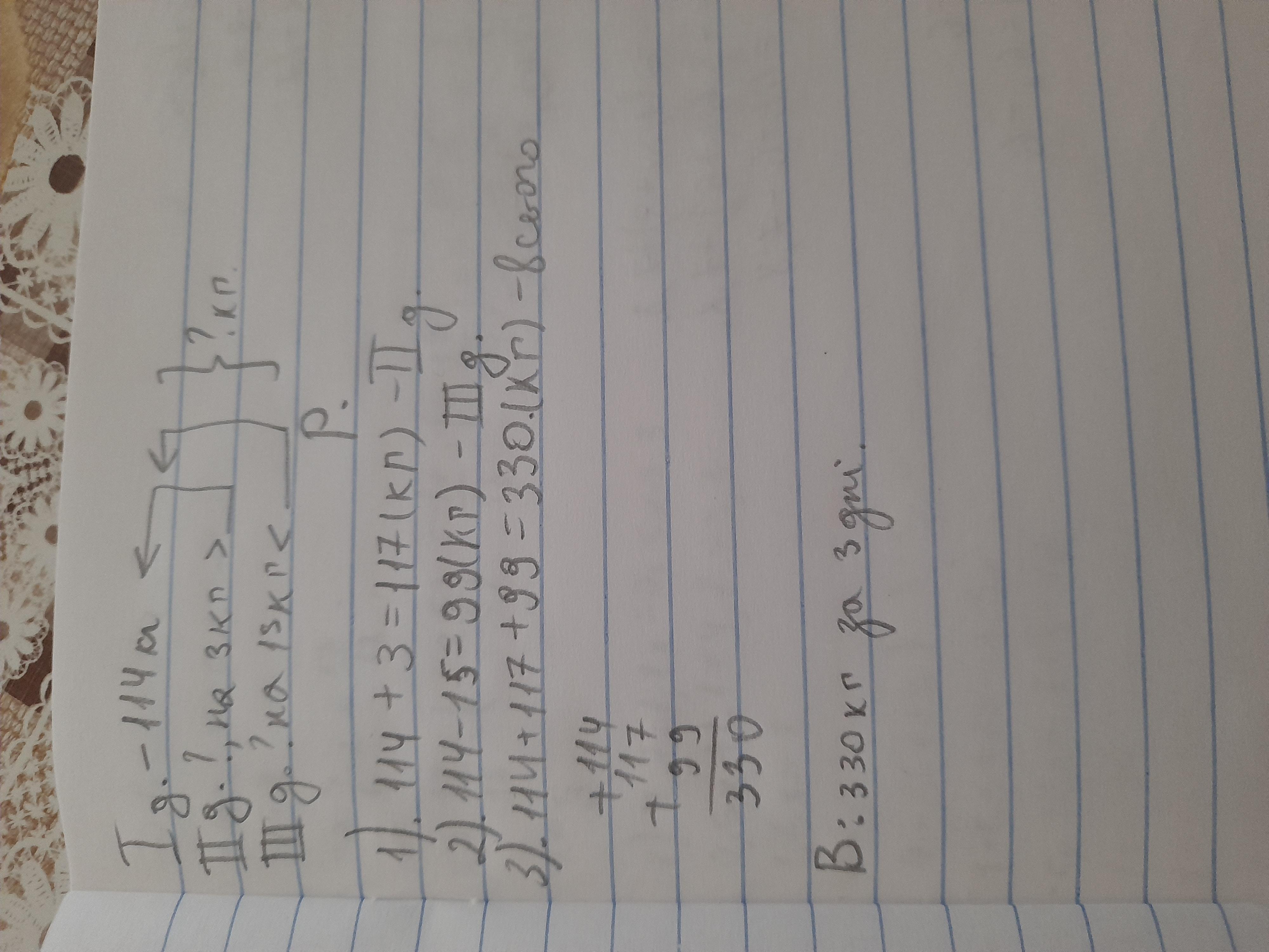 3 кг менше, ніж другого дня, і на 15 кг більше, ніж третього. Скільки кілограмів яблук завезли до магазину за