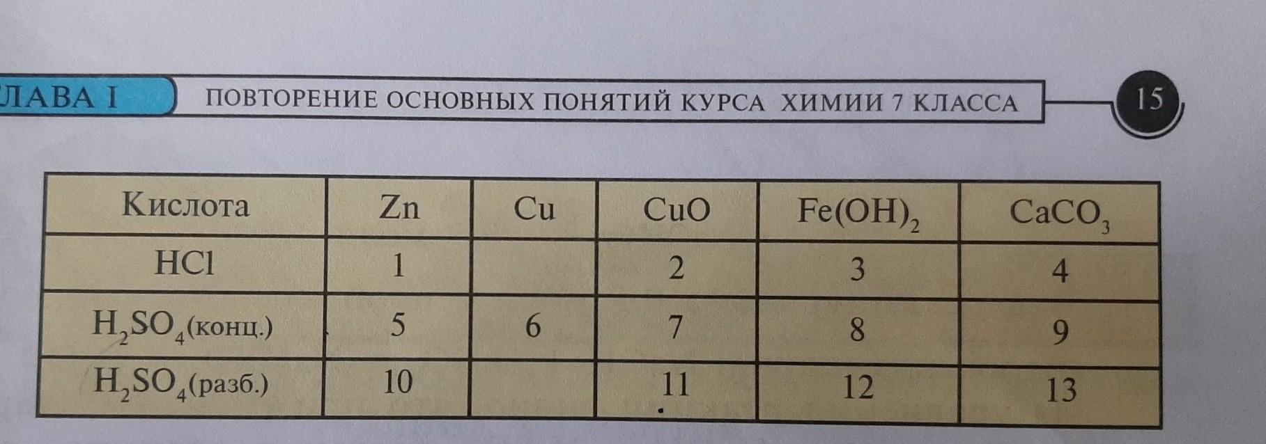 Помогите пожалуйста химия 8 класс: Запишите уравнения реакций взаимодействия веществ приведённых в следующей таблице