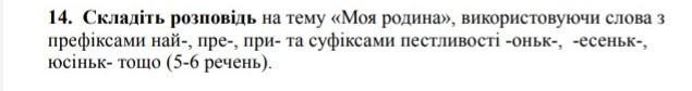 Моя родина найкраща у світі!У нас вона дружна,весела,смілива і надто розумна.Я ходжу у школу,навчаюся там і вирішую приклади,а тато і мама працюють щоб я міг/могла їсти цукерки та інше.Ми шануємо інших і дотримуємося правил.Одним словом прекрасна сім'я.В принципі ми прикольне сімейство