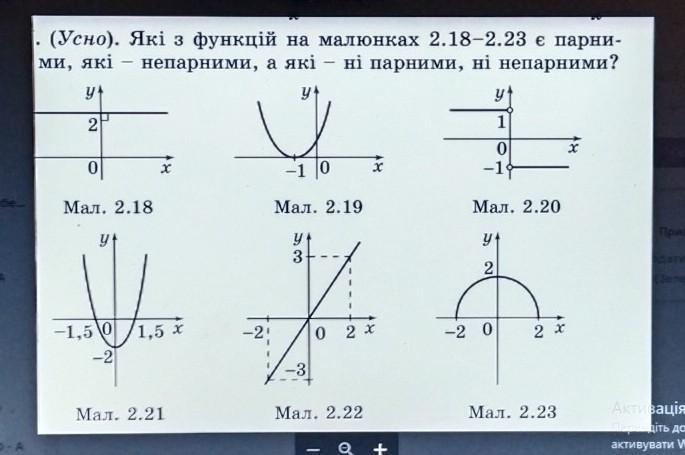 Які з функцій на малюнках 2.18-2.23 є парни- непарними, а які ні парними, ні непарними?
