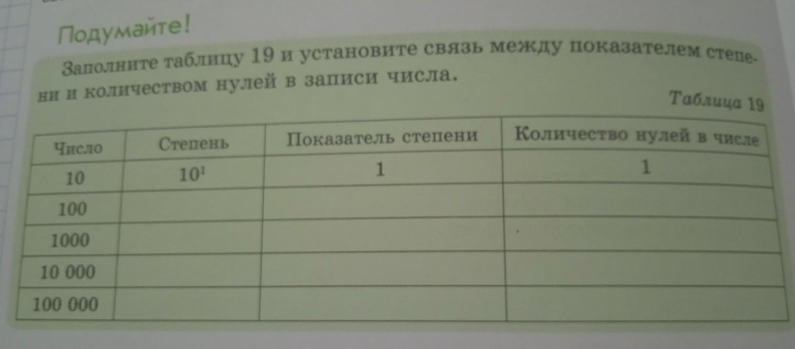 Заполните таблицу 19 Установите связь между показателем степени количеством нулей в записи числа