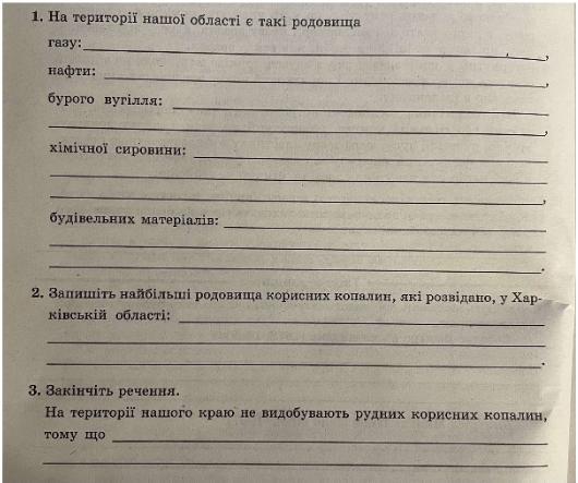 1. Газу: В Харківській області є родовища природного газу, але їх обсяги і комерційна значимість можуть змінюватися з часом.