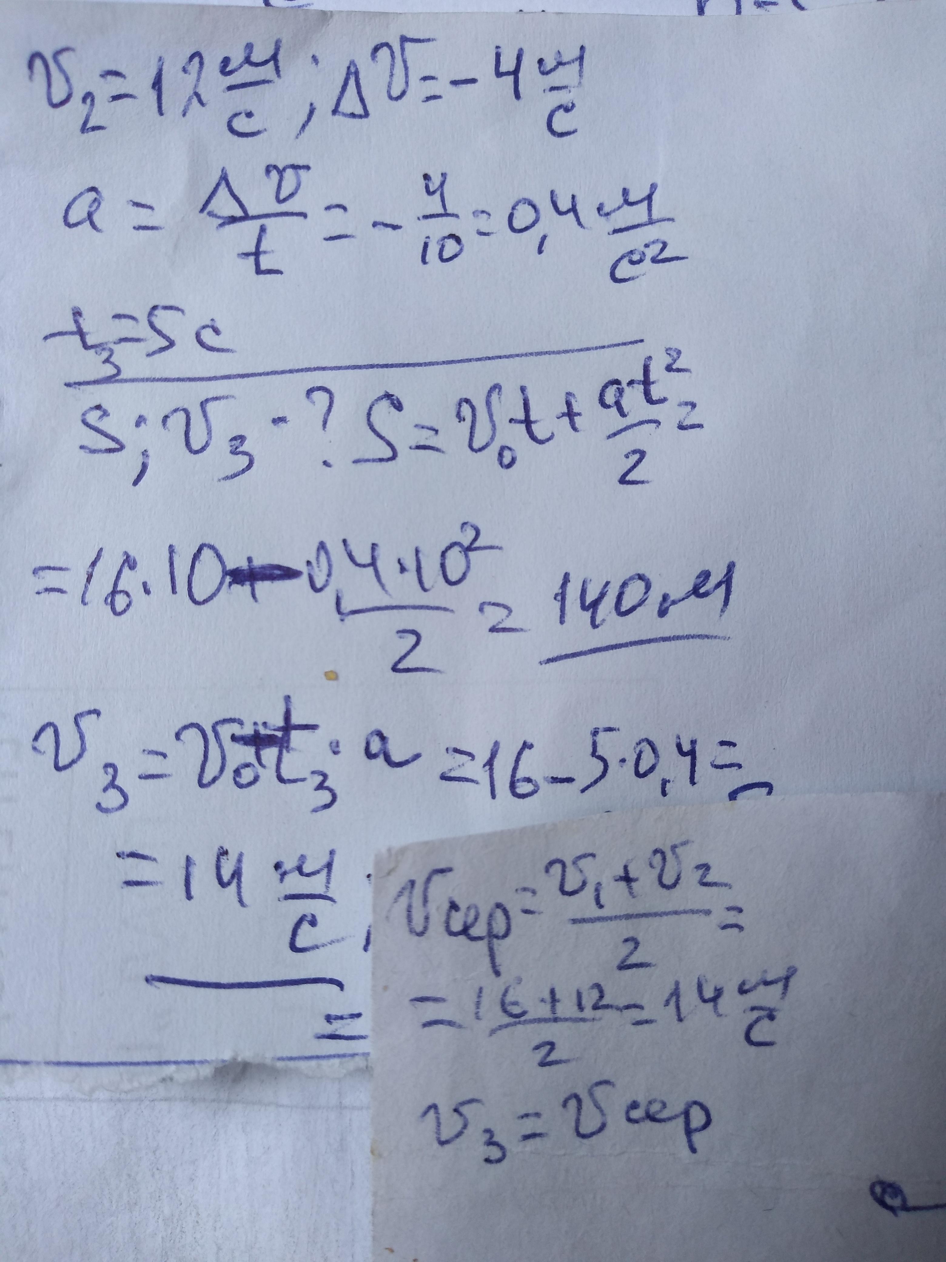 Під час гальмування, яке тривало 10 с швидкість руху поїзда зменшилася від 16 до 12 м/с. Яку відстань проїхав за цей час поїзд? Визначити швидкість його руху через 5 с після початку гальмування. Порівняти її з середньою швидкістю за весь час гальмування