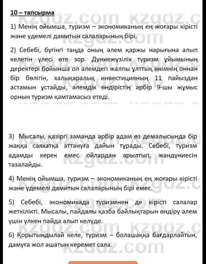 улы 7-тапсырма. Үлгіге сәйкес оқылым мәтіні бойынша өз пікіріңді дәлелдеп айт. 1. Менің пікірім - бір сөйлем. 2. Дәлел - екі сөйлем. 3. Пікіріңді дәлелдейтін мысал - екі-үш сөйлем. 4. Өз пікіріңе қарсы ой топшылау - бір сөйлем. 5. Қарсы пікіріңді ақтап алатын пікір - екі-үш сөйлем. 6. Қорытынды сөз - екі сөйлем.