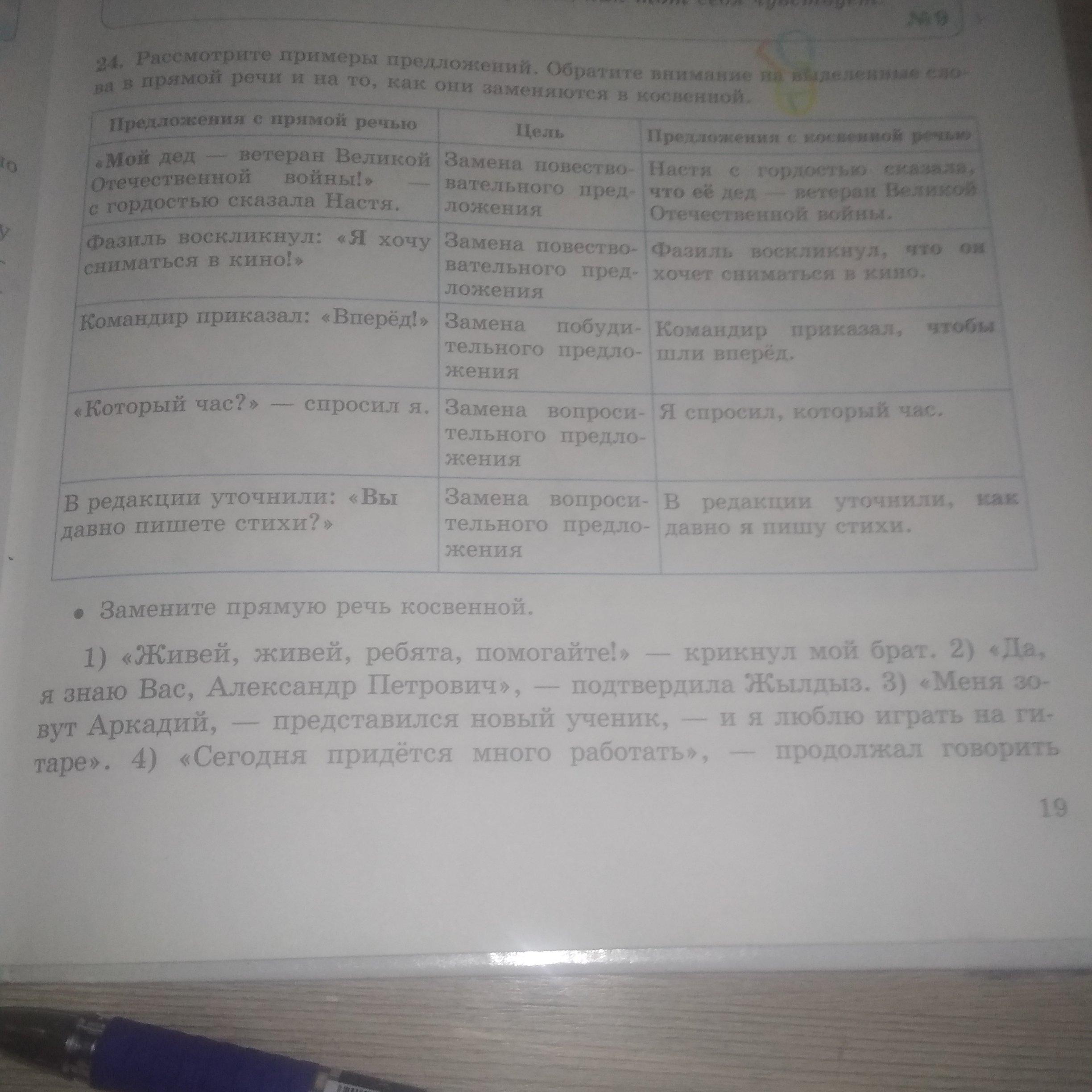 Рассмотрите примеры предложений . Обратите внимание на выделенные слова в прямой речи и на то , как заменяются в коственной