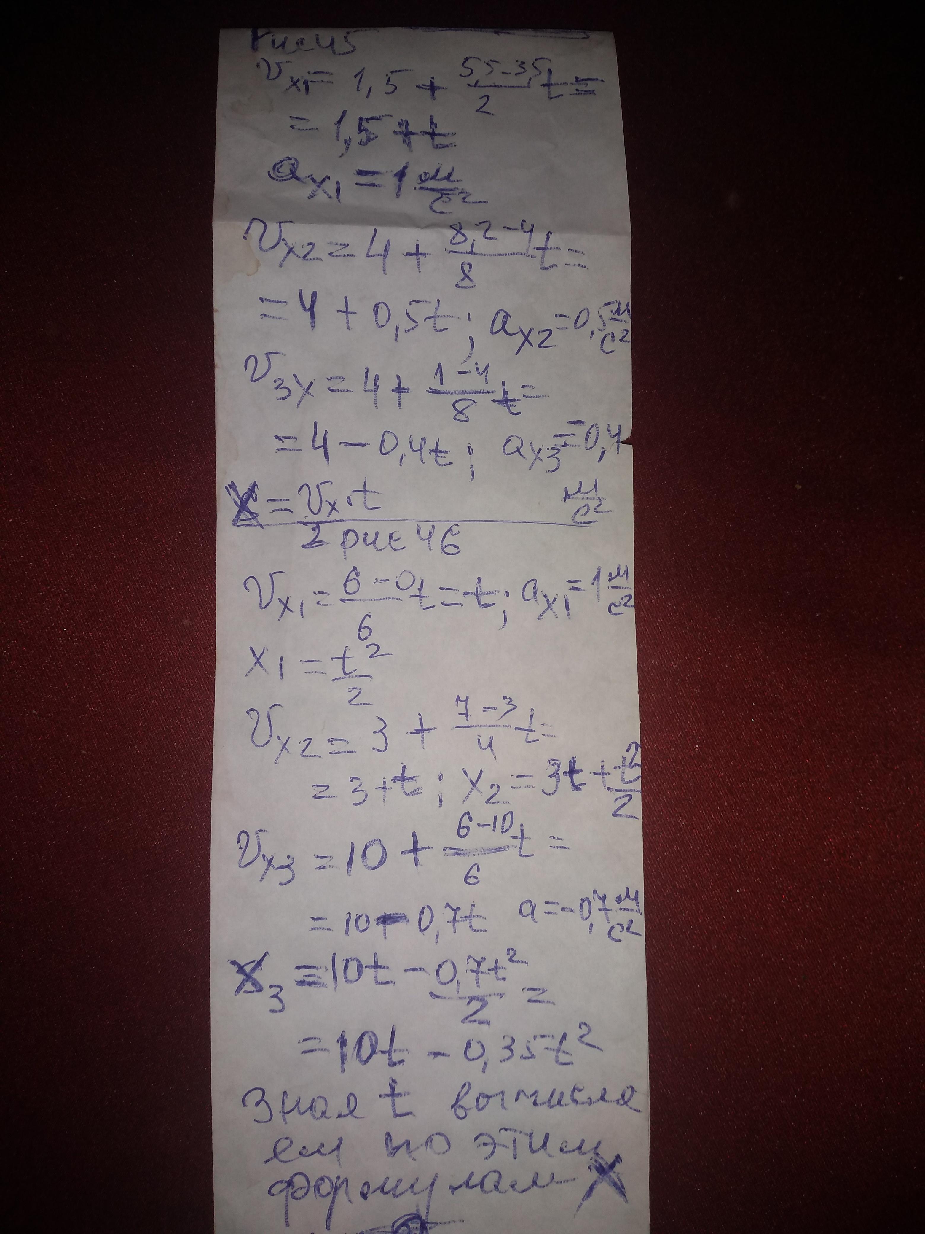 По графикам зависимости скорости от времени рассчитать ускорение тел и их перемещение.