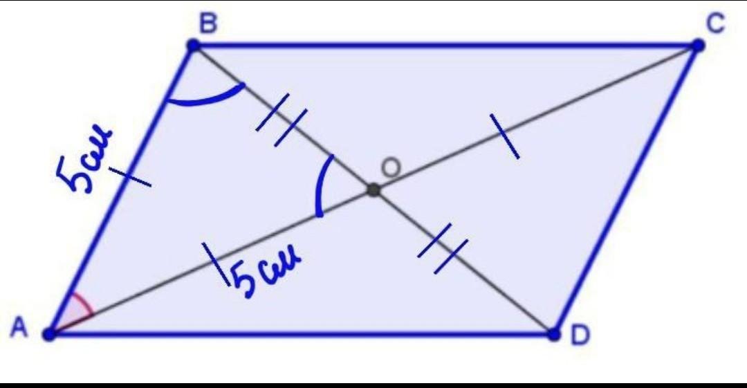 Рассмотрим ДАВО, АВ = АО = 5см, значит, ДАВО- равнобедренный, в равнобедренном треугольнике углы при основании - равны → В=20, сумма углов треугольника должно составлять 180°. Из этого же треугольника B = <0 = (180° - ZA): 2= (180°-40°): 2140°: 270°