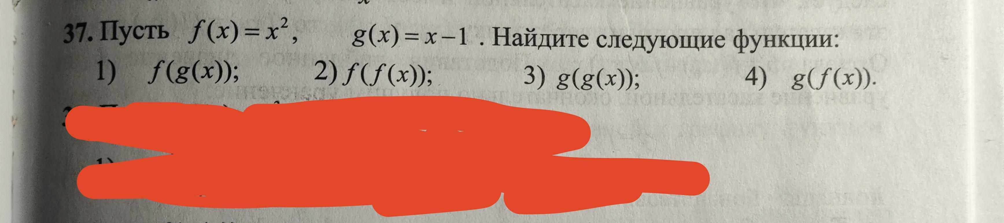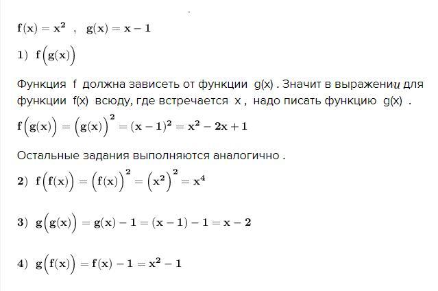Функция f должна зависеть от функции g(x) . Значит в выражении для функции f(x) всюду, где встречается х , надо писать функцию g(x) .