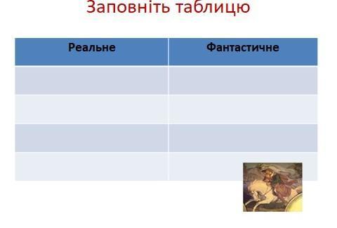 Заповніть таблицю Реальне та Фантастичне в баладі "Вільшаний король"