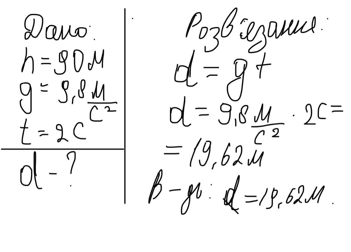 Відповідь: тіло пройде 19,62 метра за дві останні секунди свого вільного падіння