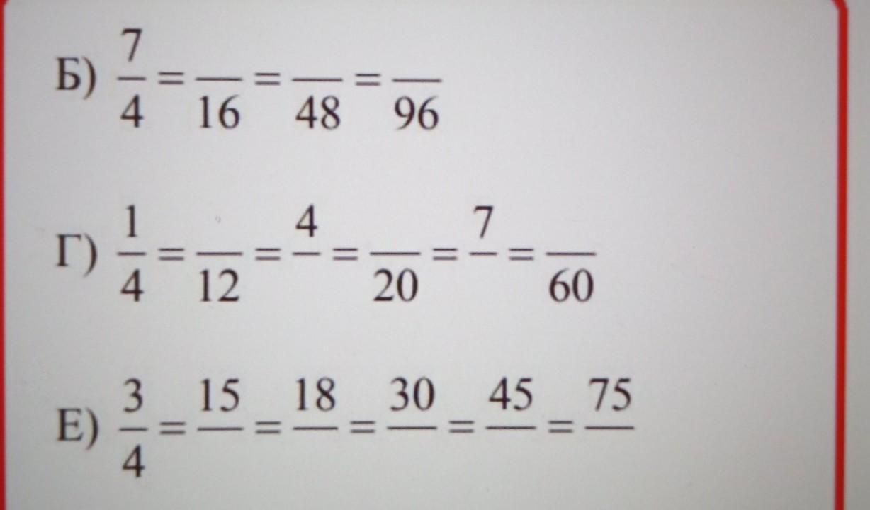 г)1/4=3/12=4/16=5/20=7/28=15/60