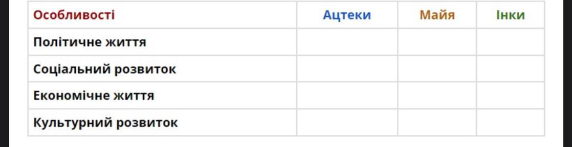 - *Соціальний розвиток*: Інки мали складну ієрархію знатних, селян і рабів. Система міткостей.