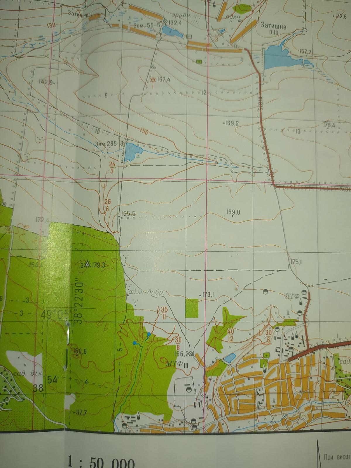 для визначення прямокутних координат потрібна карта з рамкою,де є позначення паралелей та мерідіанов( зверху,знизу,зліва та справа),та масштабом.Націєї карті,нажаль цього немає