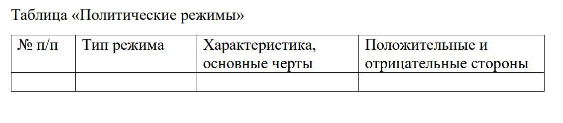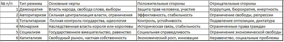 1,2,3 - политические режимы, 4,5 - формы правления, 6- общественный строй