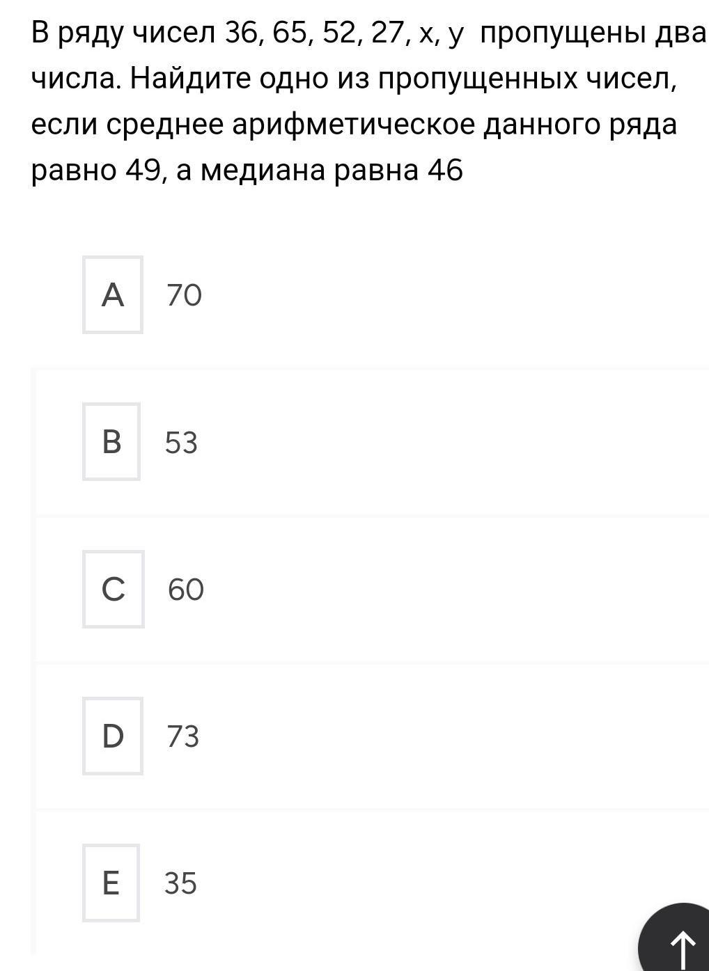 Следовательно, пропущенное число y равно 70.