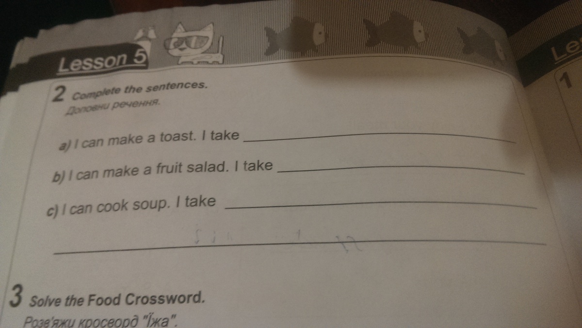 2) ... I take a pear, an apple, an orange, a kiwi, a banana, some sugar and some sour cream or yogurt.