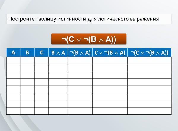 Постройте таблицу истинности для логического выражения A 7(C v ¬(ВА)) B с ВЛА¬(В ^A) Cv (BA) ¬(Cv¬(B^ A))