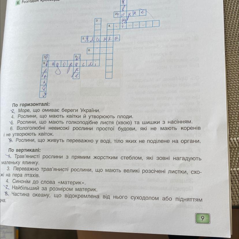9. Рослини, що живуть переважно у воді, тіло яких не поділене на органи.