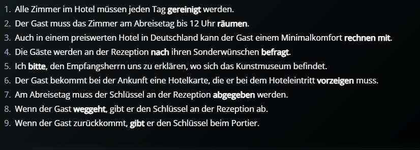 8. Wenn der Gast ..., gibt er den Schlüssel an der Rezeption ab.