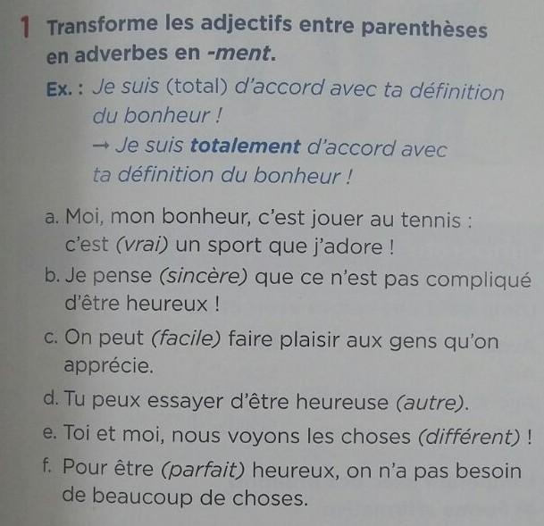 F pour être parfaitement hereux on n'a pas besoin de beaucoup de choses.