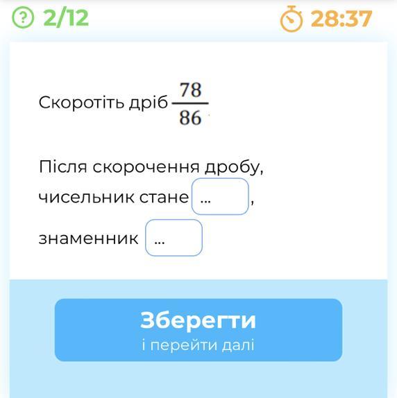 Після скорочення дробу, чисельник стане 13, а знаменник 15.