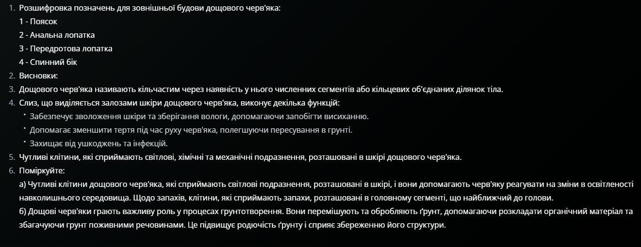Завдання 1. Розгляньте зовнішню будову дощового черв’яка . Користуючись нижче поданою