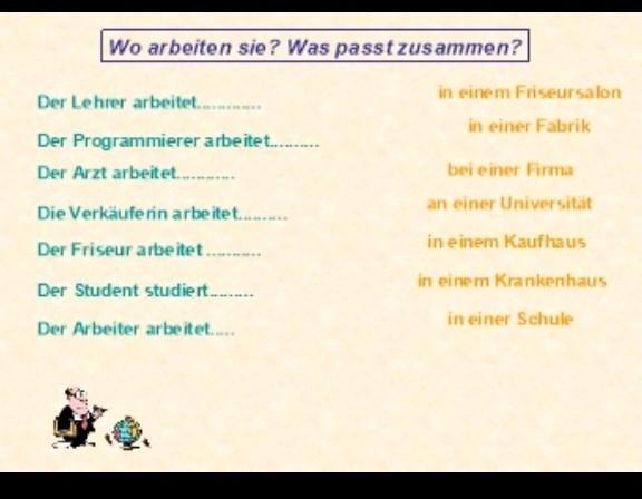 Ответ:1)Der Lehrer arbeitet in einer Schule.