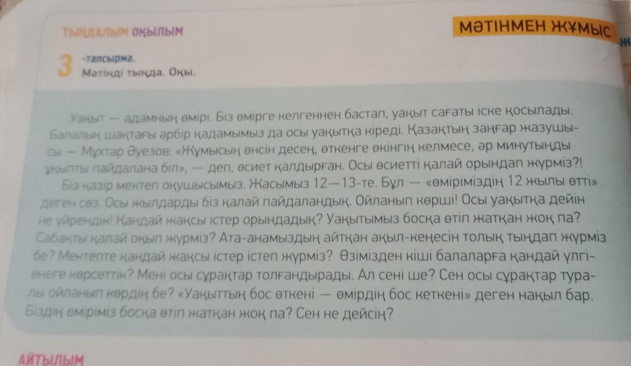 1)Менің ойымша уақыт адамға ең керек нәрсе