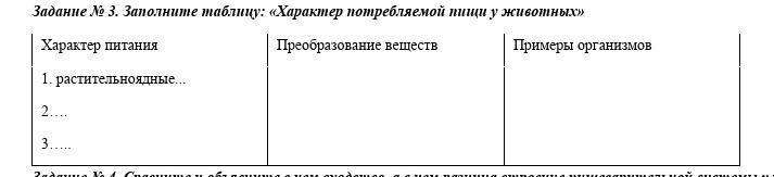 2)Составьте таблицу "Характер потребляемой пищи у животных"