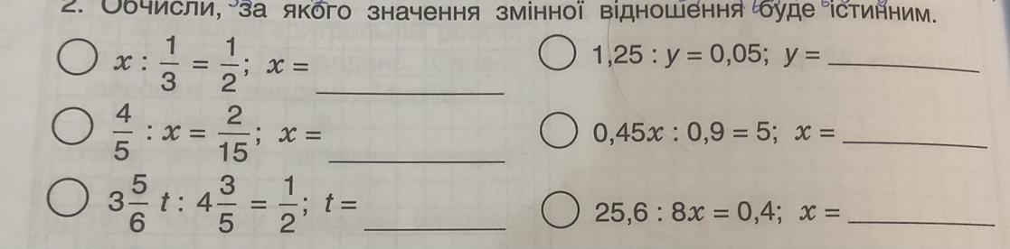 2. Обчисли, за якого значення змінної відношення буде істинним.