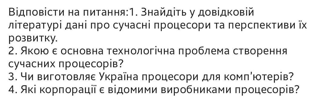 3. Україна не виробляє процесори для комп'ютерів на велику шкалу. Проте, у країні є деякі науково-дослідні лабораторії та компанії, які працюють над розробкою власних мікропроцесорів, а також імпортують та виготовляють вироби на основі іноземних процесорів.