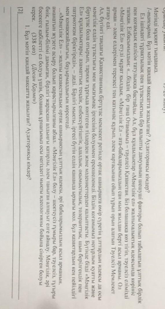 Бұл мәтіннің мақсаты Қазақстанды "Мәңгілік ел " қылуға атсалысып болашақ біздің қолымыз да елді жерді дамытып сол дамуды әрі қарай жалғастырай беру керекті керек екенің және де ең бастысы бірлік пен татулық туралы .