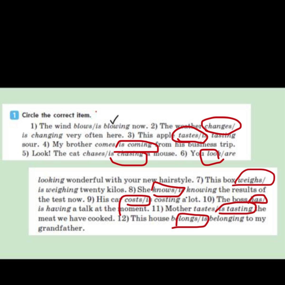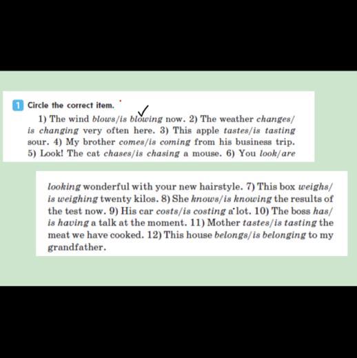 виконайте вправу 1 (зображення "вправа 1") обираючи один з двох поданих варіантів, не забувайте, що звертаємо увагу на дію чи відбується вона в данний момент (Present simple), чи відбувається регулярно (Present continuous)