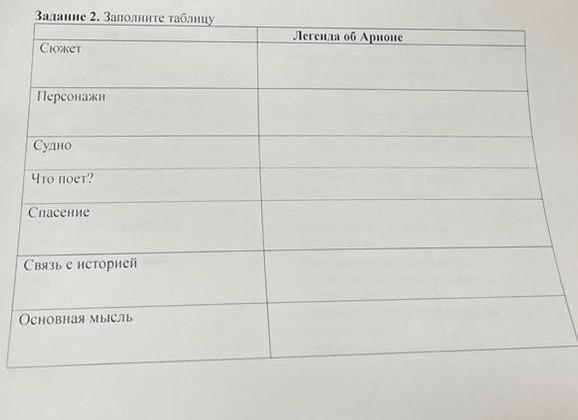 Заполните таблицу (легенда об Арионе)